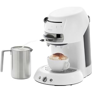 - Der 1. KaffeePadAutomat mit Profi-Milchschaumeinheit: Saugt Milch an und gibt per Knopfdruck