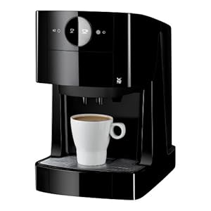 WMF 5 black Kaffeepadmaschine Feinster Kaffeegenuss in Klavierlackoptik Hochwertige Klavierlackoptik, formschönes, progressives Design und patentierte Features: Das ist die neue WMF 5 black. Damit geht Kaffee kochen so schnell wie das Bestellen im Coffee Shop und schmeckt auch wie vom Profi zubereitet. Dabei kostet jede Tasse nur rund zehn Cent. Und dabei sieht sie auch noch superschick aus. Glänzend schwarz zieht der schnelle, unkomplizierte Kaffeegenuss mit der neuen Kaffeepadmaschine WMF 5 black in den privaten Haushalt ein. Für den perfekten Kaffee So anspruchsvoll wie im Coffee Shop dürfen Kaffeeliebhaber auch zuhause sein. Dank des patentierten Perfect-Crema-Systems und einer automatischen Vorbrühfunktion bereitet die WMF 5 black einen Kaffee mit köstlicher Crema und dem Plus an Aroma. Ganz wie beim Profi hat der Genießer die Wahl: klein, mittel oder groß? Die Tassenfüllmenge lässt sich von 50 bis zu 330 Millilitern auf die individuellen Trinkgewohnheiten einstellen und vorprogrammieren. Passend für eine kleine Tasse, den Lieblings-Kaffeebecher oder den großen "Pott" mit einer Höhe bis zu 14 Zentimetern ist zudem die Auslaufhöhe des Kaffees zweistufig verstellbar. Mit dem extra großen, abnehmbaren XXL-Tank - er fasst 1,8 Liter - steht immer ausreichend Wasser bereit. Für maximale Flexibilität bei maximalem Genuss... Kaffeeliebhaber brauchen für zuhause für den perfekten Genuss nur ein Gerät: Die neue Kaffeepadmaschine WMF 5 black von WMF ermöglicht ohne Aufwand größte Flexibilität. Sie bereitet den Kaffee aus einem oder zwei handelsüblichen Kaffeesoftpads oder für Individualisten auch aus gemahlenem Kaffee zu. Mit der Doppeltassenfunktion können sogar zwei Tassen Kaffee gleichzeitig gebrüht werden. Über den extra Heißwasserauslauf sind selbst Tee, heiße Zitrone und Instantgetränke schnell gebrüht. Die neue Kaffeepadmaschine WMF 5 black verwöhnt aber nicht nur mit tollem Aroma - sie macht dabei auch noch eine gute Figur. Der formschöne Körper, die hochwertige Klavierlackoptik und das pure Design im klassischen Schwarz setzen einen edlen Akzent und verwandeln die heimische Küche in einen perfekten Coffee Shop. Für Umwelt und Geldbeutel... WMF weiß, was Kaffeeliebhaber wollen und stattet seine Kaffeepadmaschinen seit Jahren mit raffinierten Details aus, die sowohl Umwelt als auch Geldbeutel schonen. So auch bei der neuen WMF 5 black: Sie schaltet sich nach fünf Minuten automatisch in den Sleep-Modus, nach 30 Minuten sogar komplett aus. Für ein Extra an Sicherheit sorgt der eingebaute "Safe Control" mit Zweifach-Überhitzungsschutz und einem Überdruckventil. Darüber hinaus warnen Kontrollleuchten vor Wassermangel und Verkalkung. Ein mitgelieferter, austauschbarer Anti- Chlor-Filter mindert nicht nur den Chlorgehalt, sondern filtert darüber hinaus weitere geruchs- und geschmacksschädliche Stoffe aus dem Trinkwasser. Das verbessert das Kaffeearoma deutlich. Zur leichten und schnellen Reinigung sind Tropfschale und Edelstahl-Abstellgitter ganz einfach herausnehmbar. Extra Heißwasserauslauf Tee und heiße Zitrone? Über den extra Heißwasserauslauf sind selbst Tee, heiße Zitrone und Instantgetränke schnell gebrüht. Neben diesen Zusatzheißgetränken verfügt die WMF 5 black Kaffeepadmaschine auch über einige Sicherheitsdetails: sie schaltet sich nach fünf Minuten automatisch in den Sleep-Modus und nach 30 Minuten sogar komplett aus. Für ein Extra an Sicherheit sorgt der eingebaute "Safe Control" mit Zweifach-Überhitzungsschutz und einem Überdruckventil. Herausnehmbares Überlaufbecken Leichte Reinigung Das Überlaufbecken der WMF 5 black Kaffeepadmaschine ist komplett herausnehmbar und so leicht unter fließend Wasser zu reinigen. Die neue Kaffeepadmaschine WMF 5 black verwöhnt aber nicht nur mit tollem Aroma - sie macht dabei auch noch eine gute Figur. Der formschöne Körper, die hochwertige Klavierlackoptik und das pure Design im klassischen Schwarz setzen einen edlen Akzent und verwandeln die heimische Küche in einen perfekten Coffee Shop. Kaffeesoftpads oder gemahlener Kaffee Mit Doppeltassenfunktion Die Kaffeepadmaschine WMF 5 black bereitet den Kaffee aus einem oder zwei handelsüblichen Kaffeesoftpads oder für Individualisten auch aus gemahlenem Kaffee zu. Mit der Doppeltassenfunktion können sogar zwei Tassen Kaffee gleichzeitig gebrüht werden. Kleine Tasse oder Pott Auslaufhöhe ist variabel Passend für eine kleine Tasse, den Lieblings-Kaffeebecher oder den großen "Pott" mit einer Höhe bis zu 14 Zentimetern ist zudem die Auslaufhöhe des Kaffees zweistufig verstellbar. Abnehmbarer, 1,8 Liter Wassertank Kontrollleuchten für Wassermangel und Verkalkung Mit dem extra großen, abnehmbaren XXL-Tank - er fasst 1,8 Liter - steht immer ausreichend Wasser bereit. Darüber hinaus warnen Kontrollleuchten vor Wassermangel und Verkalkung. Ein mitgelieferter, austauschbarer Anti- Chlor-Filter mindert nicht nur den Chlorgehalt, sondern filtert darüber hinaus weitere geruchs- und geschmacksschädliche Stoffe aus dem Trinkwasser. Perfect-Crema-Systems Tassenfüllmenge ist einstellbar Dank des patentierten Perfect-Crema-Systems und einer automatischen Vorbrühfunktion bereitet die WMF 5 black einen Kaffee mit köstlicher Crema und dem Plus an Aroma. Ganz wie beim Profi hat der Genießer die Wahl: klein, mittel oder groß? Die Tassenfüllmenge lässt sich von 50 bis zu 330 Millilitern auf die individuellen Trinkgewohnheiten einstellen und vorprogrammieren. Technische Informationen: WMF One Touch Funktion - Kaffeespezialitäten auf Knopfdruck Doppeltassenfunktion - Padhalter ist variabel einsetzbar für 1 oder 2 Kaffeepads Patentiertes Crema System sorgt für die Crema Automatische Vorbrühfunktion für ein vollmundiges Kaffeearoma WMF Milk Connector für eine einfache und saubere Milchlösung Teach-In Programmierung für eine individuelle Einstellung der Tassenfüllmenge Separater Heißwasserauslauf WMF Easy Clean für eine einfache und